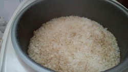 削り節粉を、洗ったお米に、お試しで、小さじ1、入れてみた~~。