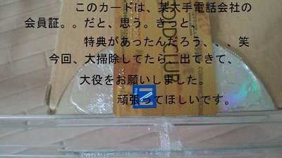 大掃除で、見つけた、某電話会社の会員証をつけさせて