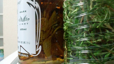 今回は、葉っぱをきざまないで、ホワイトリカーに浸けてしまった。笑