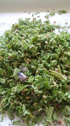今は、一度乾燥させたベランダ産のハーブの葉っぱと、