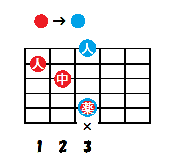 A7は、2 4弦が2フレット。3弦は押さえない。。。汗