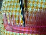 くるくると髪の毛をねじりながら、ロット?ロッド?に巻いていきます。