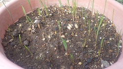 小さな球根から、お花、咲くのかなあ???