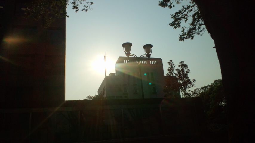 て、思ったけど、よーーーく見ると、ビルの屋上に、手前の街路灯が、、爆